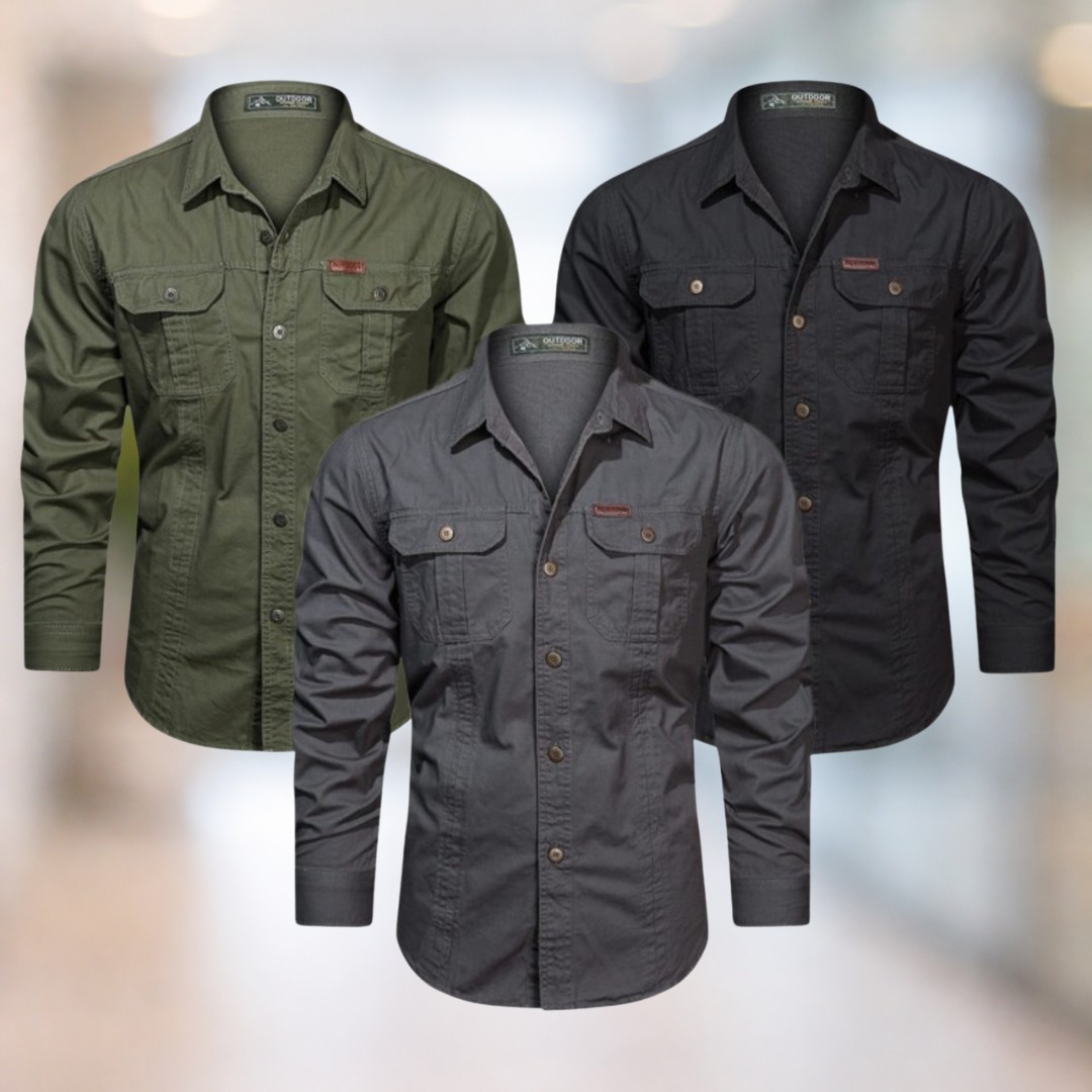 Olive green & Black & Charcoal gray Full sleeves double pocket panel Shirt - 1196