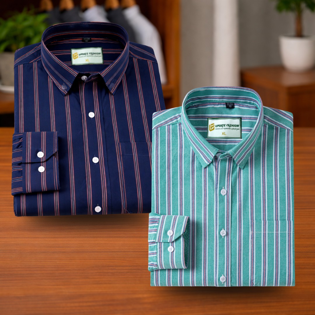 Navy Blue & Turquoise Green Stripe Shirt - 1140